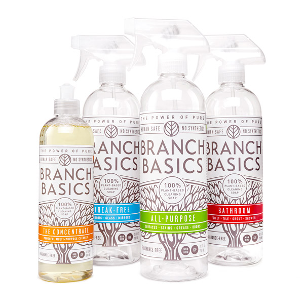 I had read the labels. They stated things like natural, no harsh chemicals, no parabens, no sulfates, etc.  I read the back and looked for all those “methyl, propyl, butyl and ethyl” and “paraben” words. Nope, none.  So I bought them and have used them over the last year.  I’m thinking I am doing pretty good for my family.  I even got my husband on board the whole “no harsh chemical” train.  And then I got this email.  It changed everything for me.  Not right away mind you, it’s taken me some time to get up the gumption to re read the labels on the products I currently use.  The article is from wellnessmama.com.  She is talking about cleaning her oven.  No big deal, right?  Sure! Katie talks about cleaning her oven with Branch Basics. A 0% toxic cleaner.  It’s a great post.  It cleaned her oven really well.  She is hooked on the product.  It’s all natural, no harsh chemicals, actually there are no chemicals in Branch Basics at all.  None, nada, zilch!  I used her link to Branch Basics, because of course I am curious.  I read the “about” page,  and their story is pretty amazing.  The women that started the company were experiencing some severe health issues.  Once they began living in a 0% toxic environment they began to feel better and their chronic illnesses and pain vanished.  So I ordered the small kit for myself, my husbands mom and two sisters.  I was hoping the four of us could test them out and chat about how we used it and what we liked.