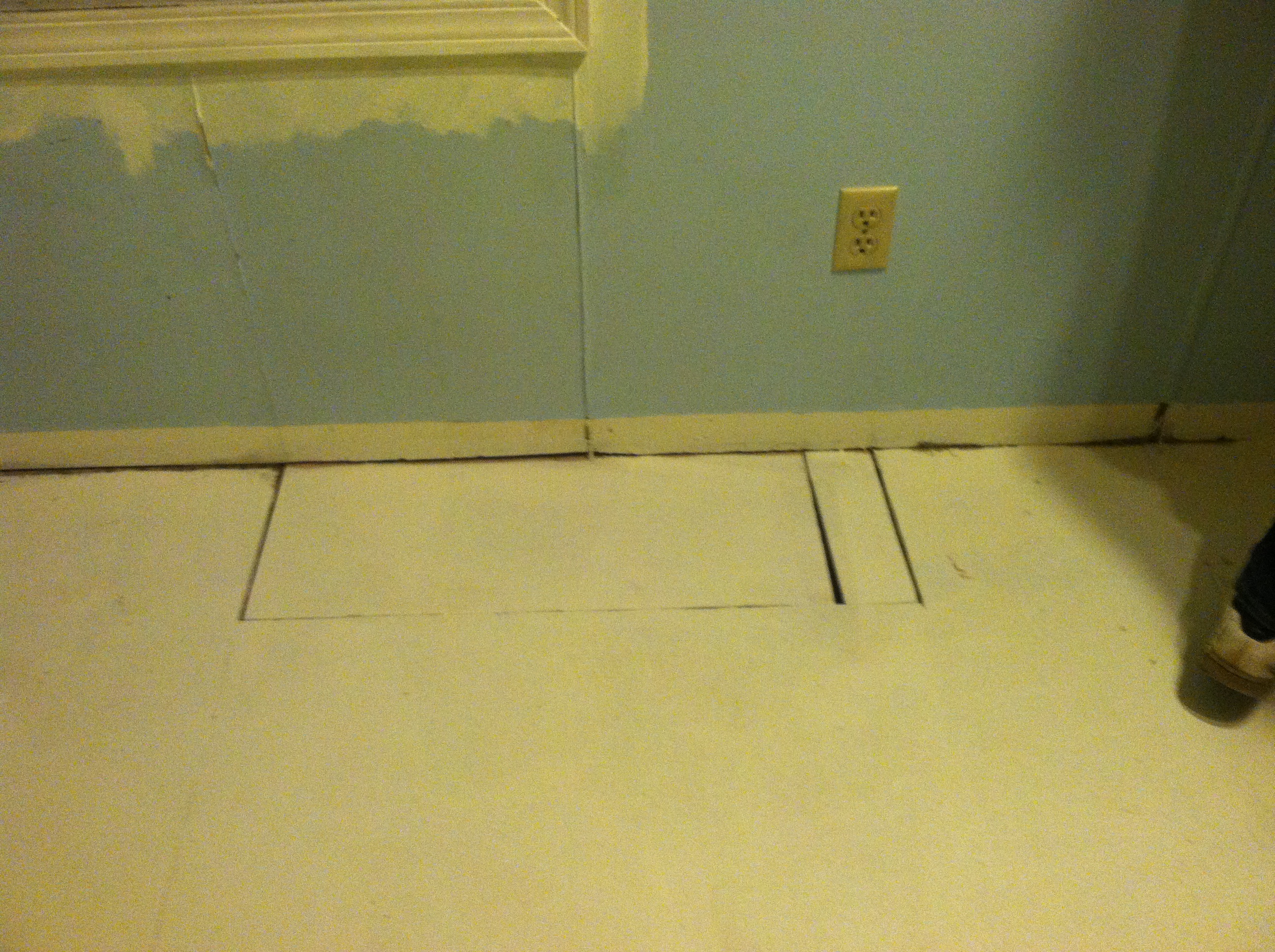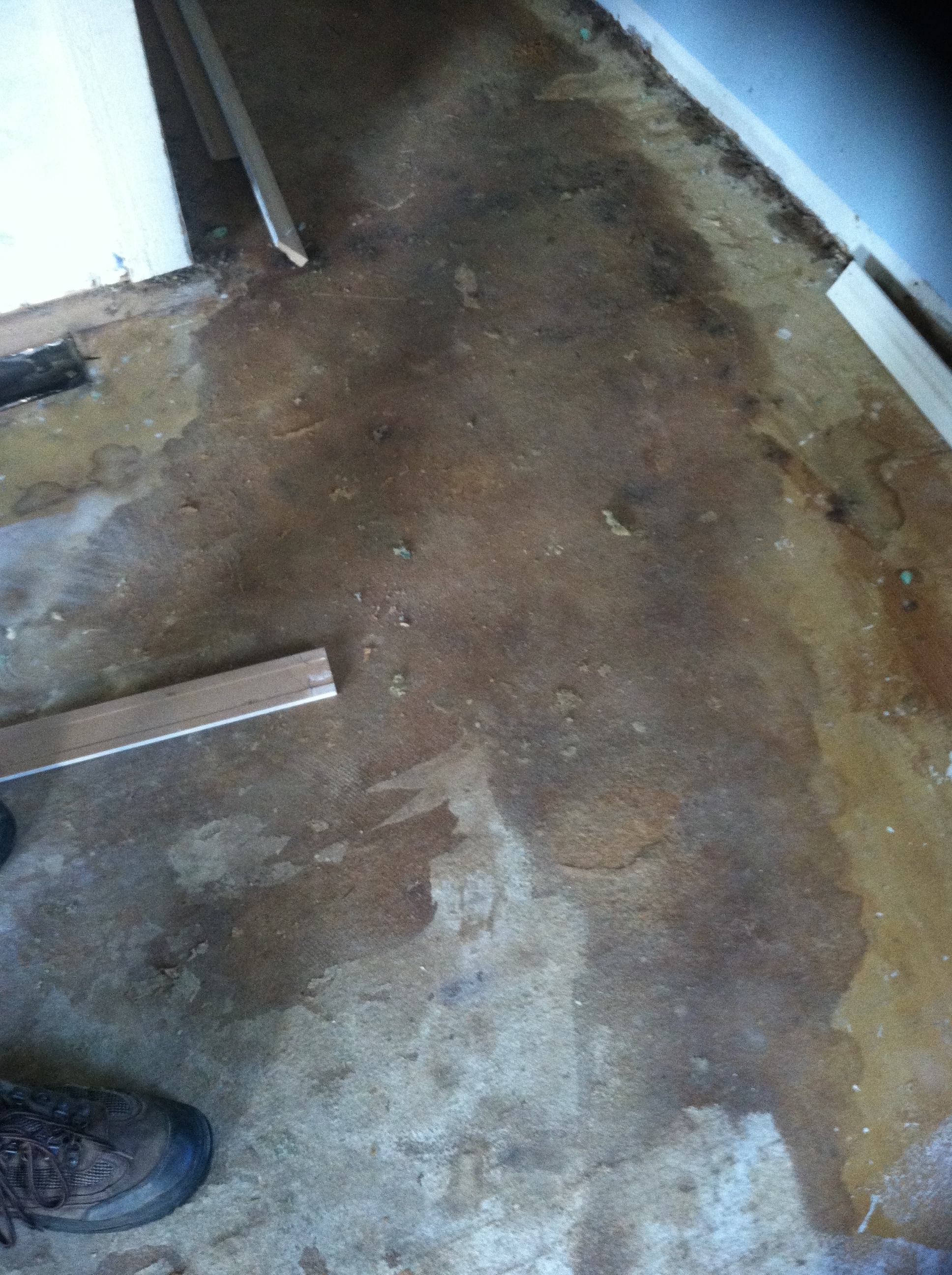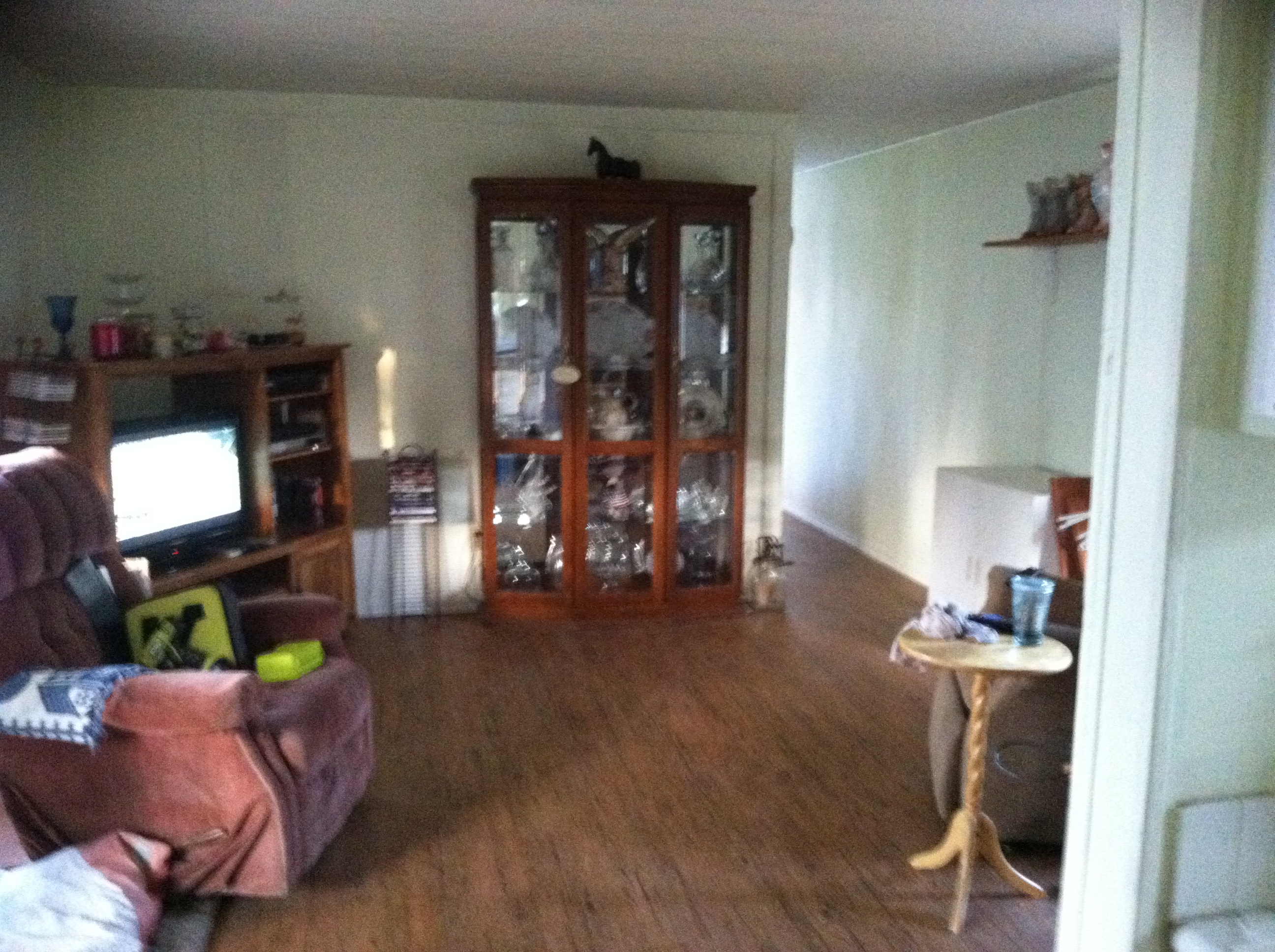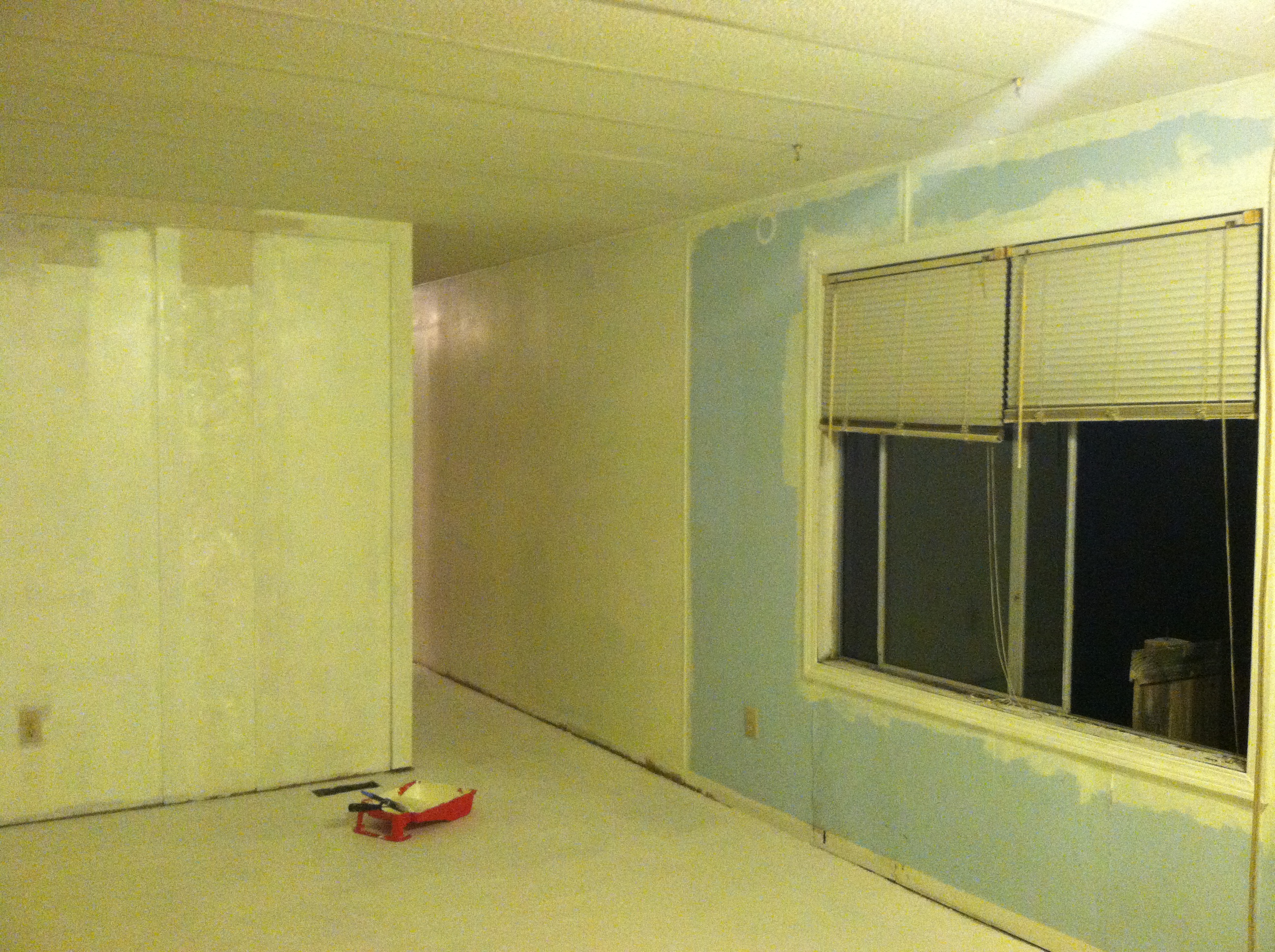 Since mom decided to move here and we were given the trailer, there of course are some minor repair work to be done. Since we are dealing with a mobile home we expected some flooring issues. Also, the house smelled like urine… So, with the help of some very great friends, we began to rip up carpet and paint the floor with Kilz to seal off the smell. Which worked well for a friend of mine and her rental. It wasn’t working for us. The bedroom still smelled like urine.  It was awful.  After talking with a friend of Jeffreys, we learned we had unfortunately bought the latex Kilz, not the enamel Kilz.  Enamel base will seal off the smell.   Lesson learned.  Please, please, please learn from our mistakes.